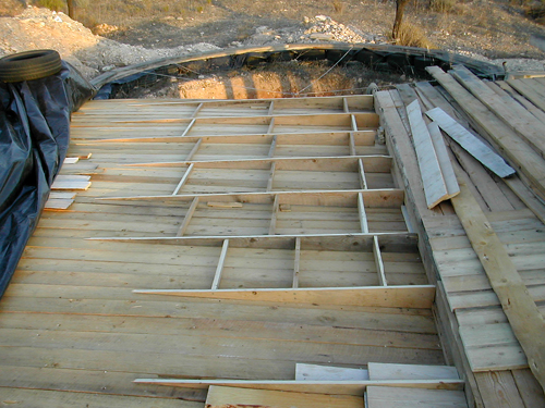 15-17 Dec 10Carpentry capersDave has been working hard to get the roof ready for waterproofing. He spent three days last week and three this week on it. We're so close now we can almost smell the cork insulation ;-) Below are the fascia panels he's been scribing away at.