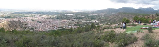 So who's for jumping off a cliff?Well, not me that's for sure. It makes my toes curl just thinking about it. But as for Dave, that was his birthday present which he finally got to take last Monday. Ok, back track a bit. For those of you who know Dave you know he's really a bird in disguise. But since starting the earthship he's been grounded - not intentionally, just because time is limited. So, now we're in I thought it would be nice for him to find his wings again. To fly his microlight he needs a runway, but to parapente all he needs is a hill, and there's plenty of those around here. So he's thinking of learning and asked for a tandem to see if he likes it. Last Monday we eventually got up to Totana near Murcia to a flying school. After meeting them in a local bar very much at ground level, we took the winding road up through beautiful pine forests to the top of a very tall cliff. And that's where they jumped off. Well, not really jumped as the wind was keen that day and all they did was lift the chute and up and up (and up) they went. Ooohh, toes curling again!